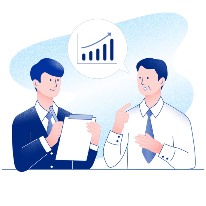 また、調査員は、調査の過程で経営の課題を把握すると同時に、それを乗り越えるための施策や将来の展望についてもヒアリングします。今後の経営についてのご相談などにもビジネスパートナーとして寄り添い、サポートをさせていただきます。