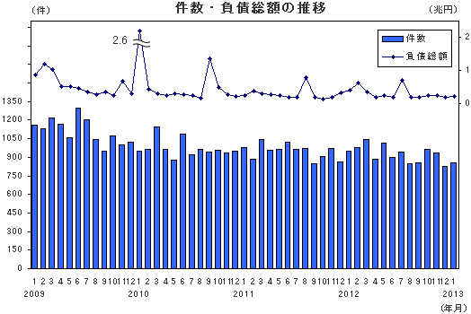 倒産集計 2013年 1月報