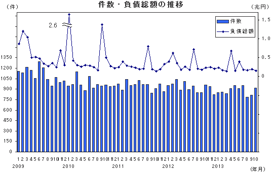 倒産集計 2013年 10月報