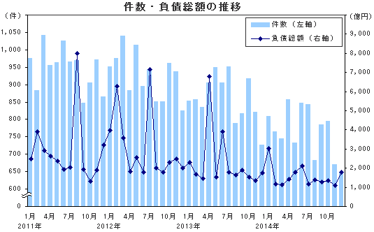 ポイント件数は2014年最少、負債総額は7カ月ぶりの前年同月比増加
