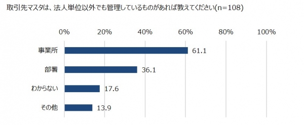 さらに、取引先マスタを法人単位で管理しているのは85.2%でした。