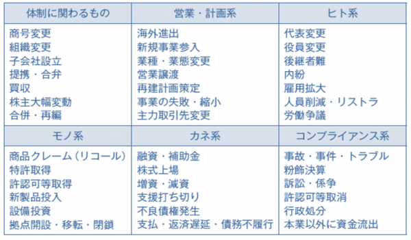 商号の変更を例に考えますと、「何か大きな判断をしたのか」「CI(コーポレートアイデンティティ)の刷新によってブランド強化を図るのか」「親会社が代わり、方針転換があるか」などの仮設をたてることができます。所在地の変更では、都市圏への進出であれば、伸び盛りの企業で色々な投資をする可能性があるといったことが考えられます。