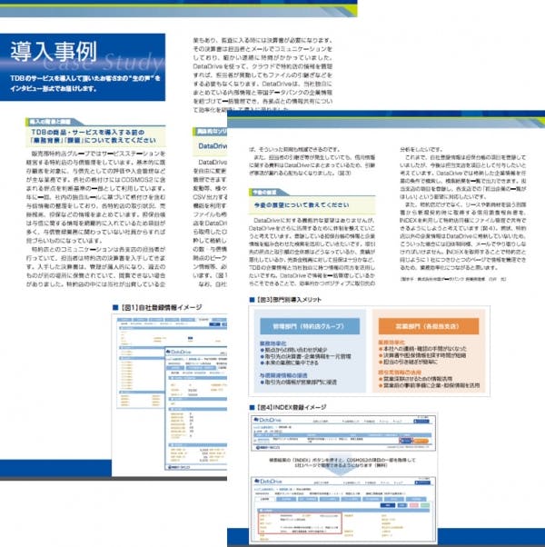 ・DataDriveの取引先に過去の決算書のファイルを添付し、営業部門と共有することで社内問い合わせが1/4に減少した