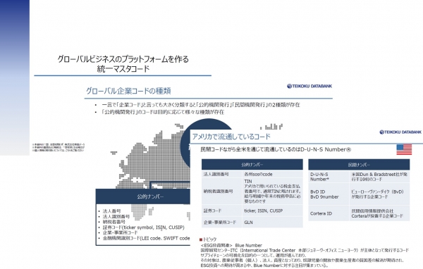 グローバルにビジネスを展開する企業にとって、国境を越えてビジネスを管理するには、取引先の企業情報を共有できる仕組みが求められます。一方で、世界にはその国・地域で流通している企業コードが300以上もあると言われ、どの企業コードを採用すればよいのか、数多ある企業コードの特徴がよくわからないという声もよく耳にします。