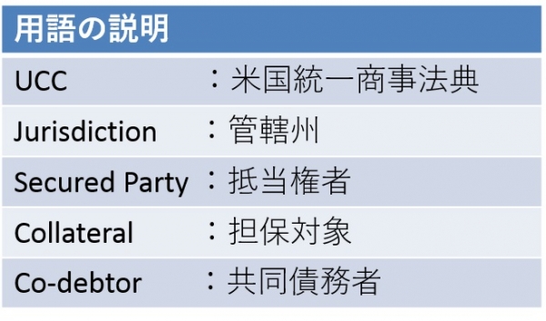 もう1つの与信判断の材料としてUCC(Uniform Commercial Code、米国統一商事法典)と呼ばれる抵当権設定についてご紹介します(図表2)。