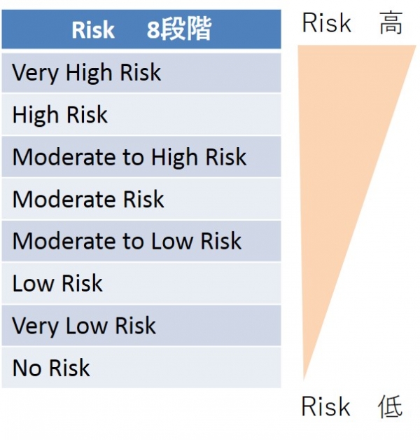 最後に評価とガイドラインについて説明します。アメリカの調査報告書には結論としてリスクとガイドライン(与信限度額)を載せています。弊社が提携している調査会社のリスクは、8段階でリスクの高低を示すようにしています(図表3)。