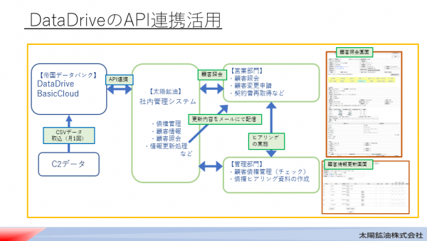 図3.太陽鉱油株式会社様 DataDriveのAPI連携活用イメージ図