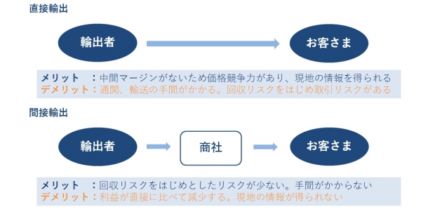 図1:直接輸出と間接輸出のメリット・デメリット