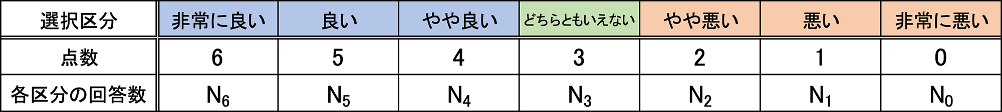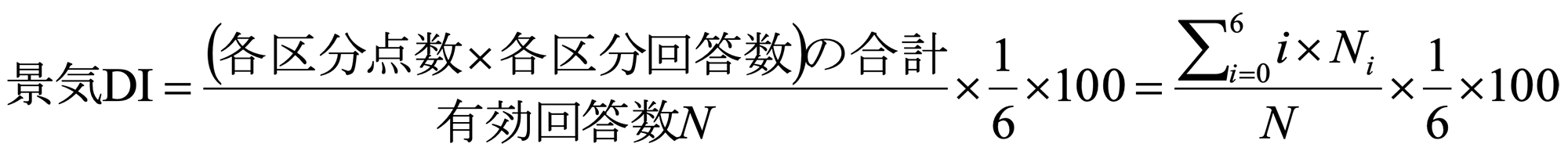 DI(ディフュージョン・インデックス〈Diffusion Index〉)は、企業による7段階の判断に、それぞれ以下の点数を与え、これらを各選択区分の回答数に乗じて算出しています。