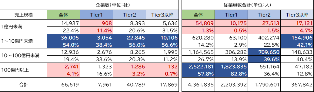 Tier3以降は売上高500億円未満の企業を分析対象とした。