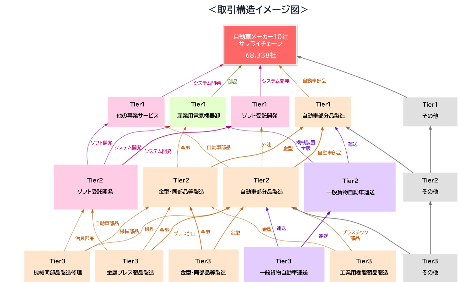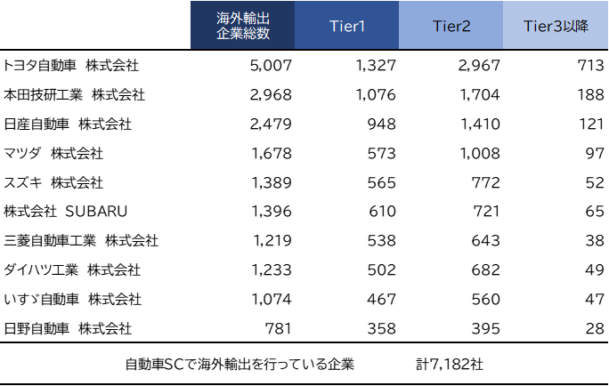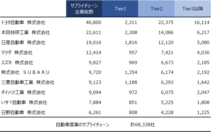 ※複数の自動車メーカーのサプライチェーンに登場する企業は、上位のTierに集約して分析(以降の分析も同様)