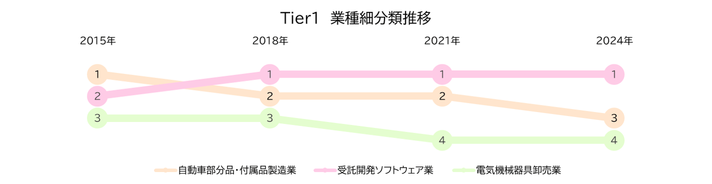 Tier1トップ業種は自動車部品からソフトウェアへ