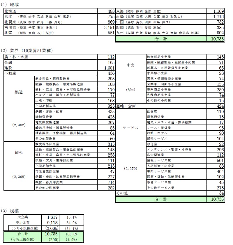 全国全業種、全規模を対象とし、調査協力の承諾が得られた企業を調査先としている。