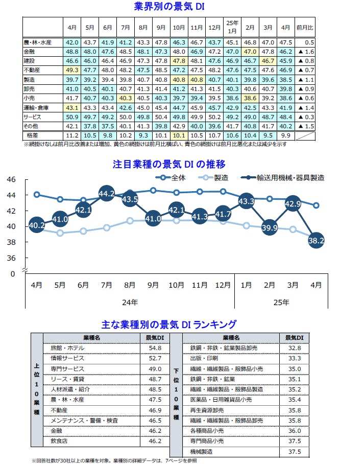 業界別:10業界中9業界が悪化、トランプ関税に対する警戒感強まる