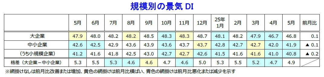 規模別:「大企業」は3カ月ぶりに改善も、「中・小規模企業」は低調な推移