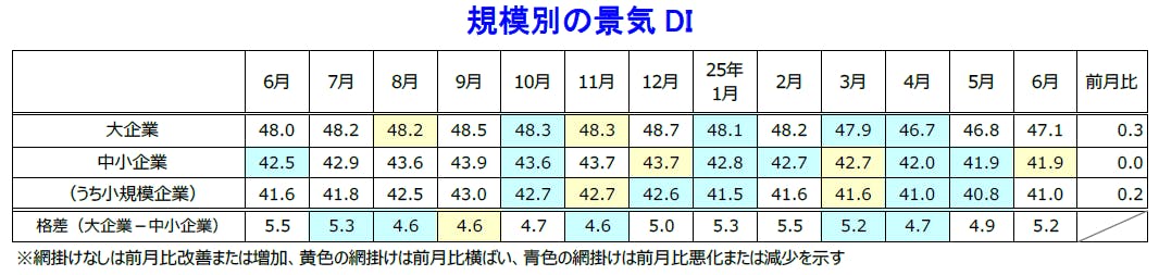 規模別:「大企業」が2カ月連続で改善も、「中小企業」は7カ月間上向かず