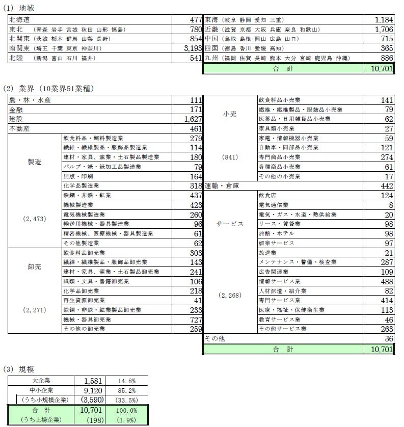 全国全業種、全規模を対象とし、調査協力の承諾が得られた企業を調査先としている。