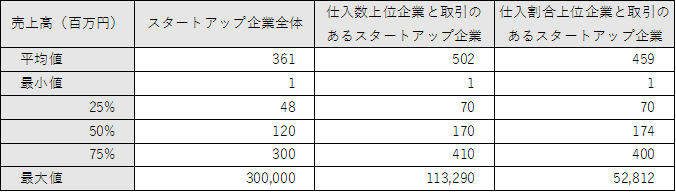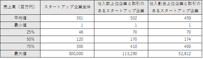 大企業への販売実績があるスタートアップ企業では売上高中央値は1.7億円に増加