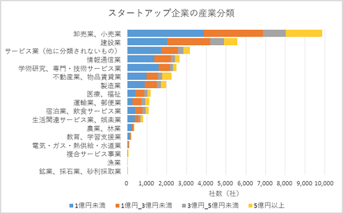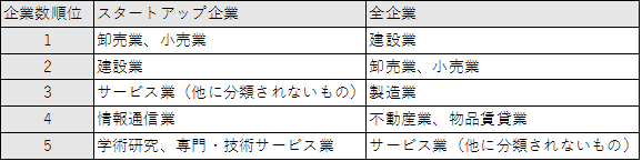 スタートアップ企業数が多い業種は、「情報通信業」や「学術研究、専門・技術サービス業」。
