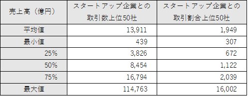 スタートアップ企業と関わりの深い企業は売上高300億円以上