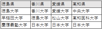 図表3 スタートアップ企業の代表者の出身大学上位3校。同率の場合、四国に最も近い大学を抽出した。(出典:帝国データバンク作成)