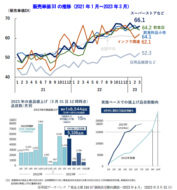 • 販売単価DIはスーパーストアなどの「各種商品小売」で66.1となるなど生活に関連する業種で上昇がみられる