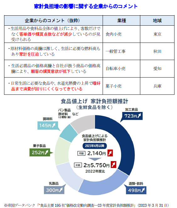 • 企業からは電力・ガスや食品を含む生活必需品の価格上昇による買い控えなどを懸念する声も多い
