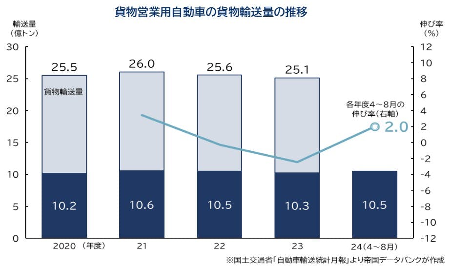 トラック輸送DIは44.1と景況感の厳しさ続くも 輸送量は前年の水準を維持、2024年問題への対応続く