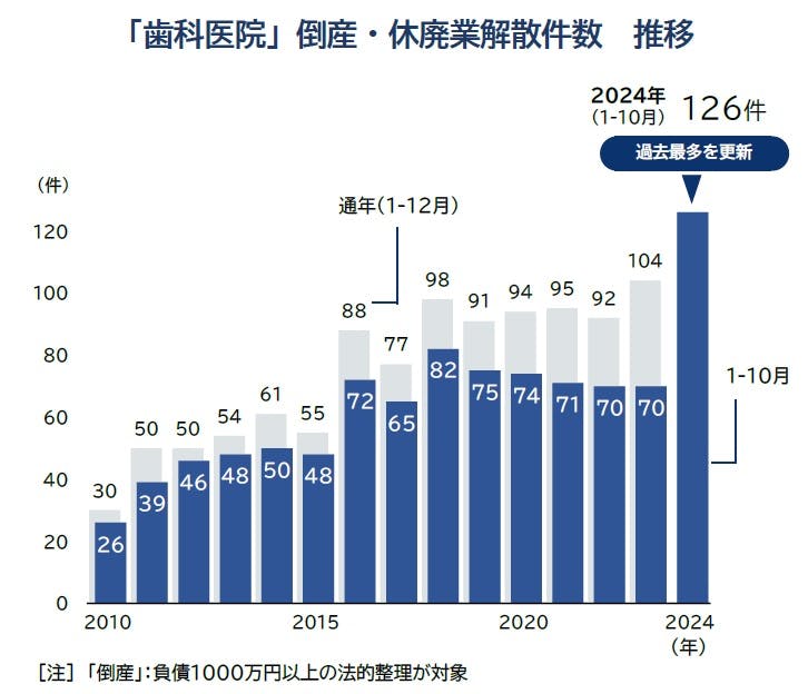 1. 「歯医者」の倒産・廃業、前年超え年間最多 前年比1.8倍ペース